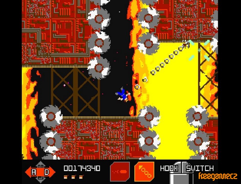 You appear on a space station fighting robots which is prepared using several different units and traps. You use only two things. The first is a hook to aim and shoot on wall and so you can avoid several wheels and other unpleasant things in your way. The only moves you can id is to go in front or back. The second instrument is your weapon which you shoot with and kill enemies with bosses. To change the weapons just use the mouse and for some progress you should combine both actions.