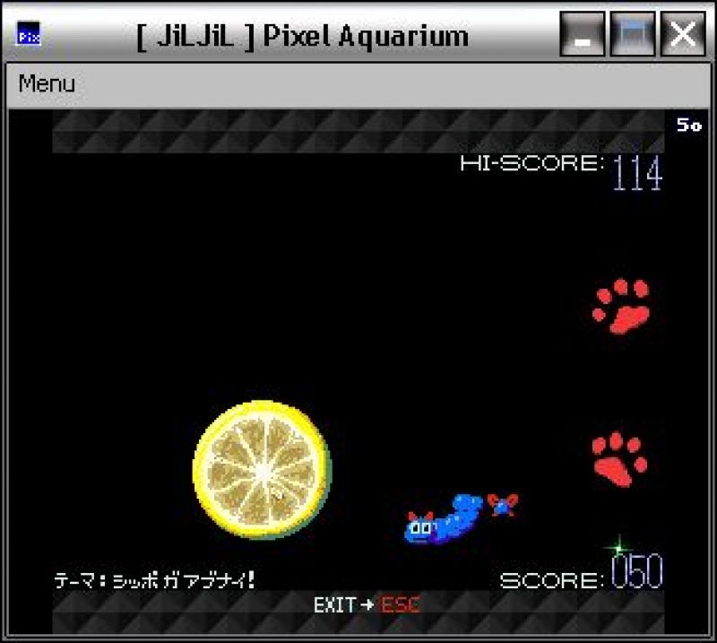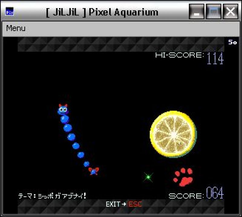 Pixel Aquarium is a game from asian quisine. Ingredients are one worm, half of citron with physical abilites of big ball and unknown animal (feets could belongs to cat, but there are only two of them). All these are dashing in smallsaucepan. Serve with sound as quickie. Good taste.