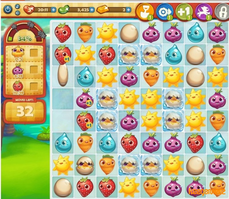 The strategy is important on a different level as well. To collect enough carrots, onions or apples, you have to make higher combinations then three of the same kind. Making bigger lines and groups the pieces around get increased value so with the right moves you can collect much more points.