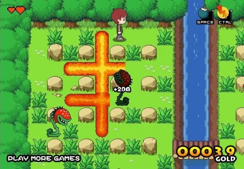 This time it's small boy who likes playing with fire. His specialities are laying the bombs and collecting various bonuses which improves his ability. But again he must kill bloodthirsty creatures. Good luck!
