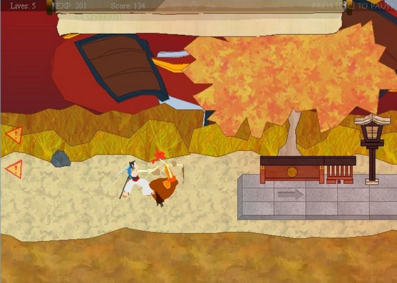 In the Middle Ages Japan the most famous soldier was samurai thanks their power. I don't know if our hero is so powerful but what he really can is swish and cut with his sword. The main enemy - dragoon - brings him more and more enemies. And in this moment you have a go with your aggressiveness. Collect experience, it can be exchanged for improvements.