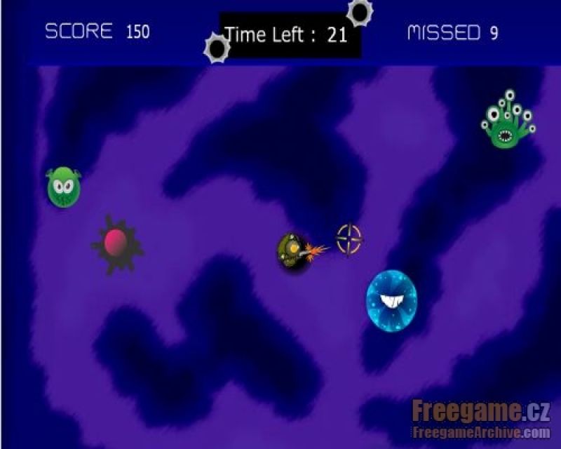 Here you have only 60 seconds to kill as many monsters as possible moving around you. As a good soldier you hold your position in the middle of the screen, so the only thing you do is rotating and shooting. More things dead means more points. I missed any action music or so to improve the game.