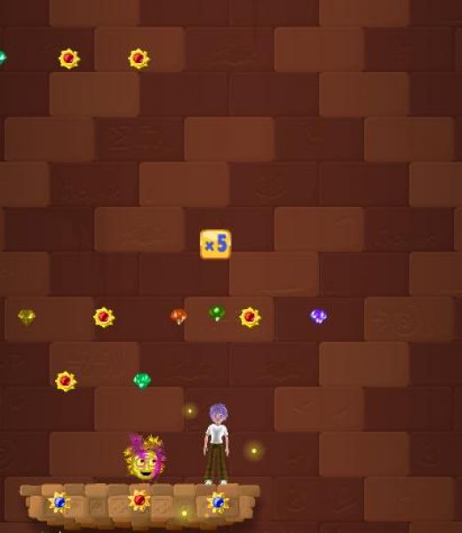 Blue, green, red diamonds, different flowers. All must be collected during all the never ending jumping. You are going to jump from and to platforms and only up. It's only to reach some level and you get into the next round. The tutorial shows all you need to know. The platform move so you shouldn't waste your time standing on one place.