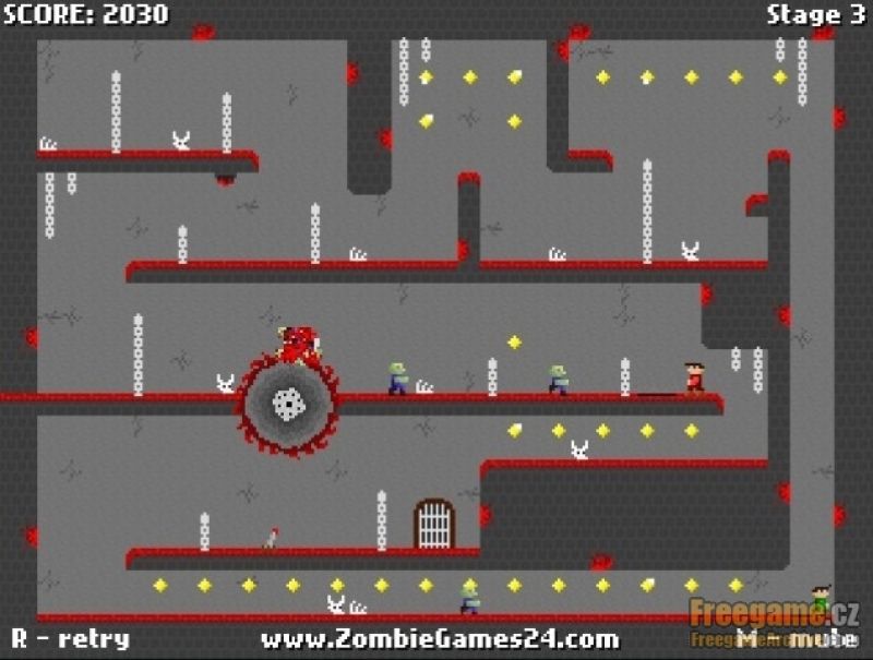 Two brave guys get on a very unpleasant place littered with zombies. The main goal is to survive all the dangers and get to the exit. The idea is fantastic because you control two guys (or invite your friend to control the second one) and only through the cooperation you can be successful. For example one lures the zombies and the second moves or pushes a button making the undead to be squashed.