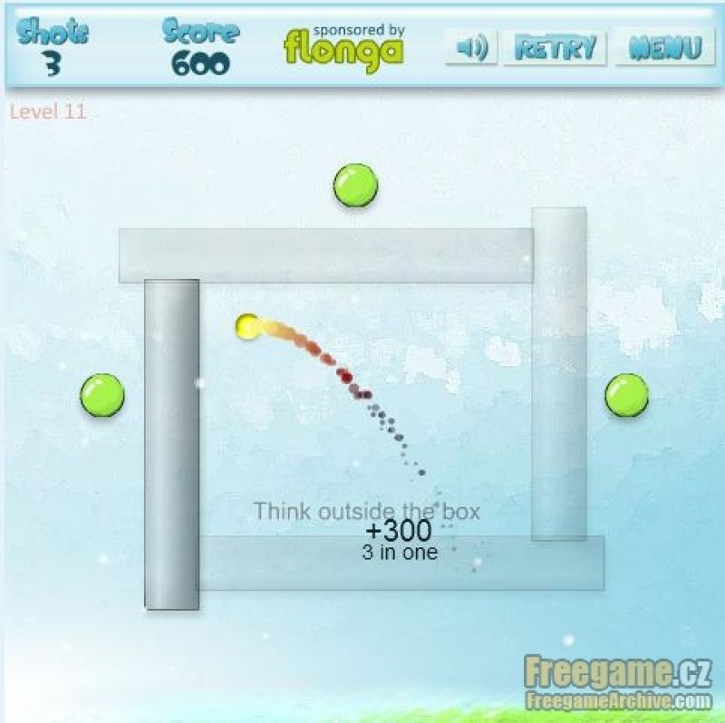 Before you start playing every level it is very important to look around at first and think about what to do. In the first levels it is not so much about strategy but to get know the level itself. To make all clear I will tell what is going on. The goal is to shoot down all the green marbles and those then disappear. You can use only limited number of shots so think well. You can use bouncing from the wall and other objects. The yellow objects bounce your shot but the red ones mean game over.