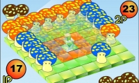 Great game for small and big players. It will practice your logic and tactic thinking. You can see blue and orange mushrooms. You control the orange group. Multiply them so you cover the biggest are possible. When you come close the the enemy you can turn his mushrooms into your colour. Plan carefully when you make mistake the opponent can join your mushrooms into his army. The game finishes when all the fields are filled.