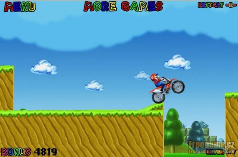 Poor Mario he was put he was put on this hell fast bike and it's only up to you if he is going to get into the finish alright or in pieces. Control the bike with keyoboard arrows and avoid making him fall down. The special part is the beginning where you have to push the throttle very slightly. Collect as many coins possible and many pitfalls wait for your.