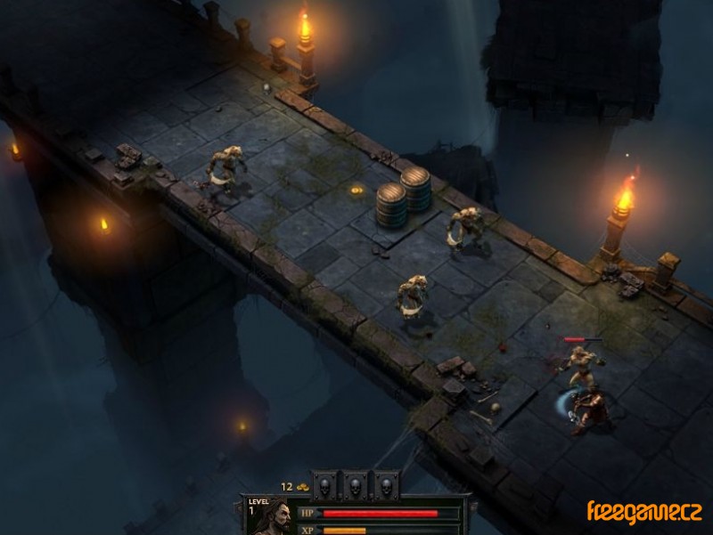 Get inside and hack and slash your way through, but it won’t be so easy. Walk through one screen after another and destroy certain number of enemies. For this you get experience and for higher level some points for your skills. Money can be used for shopping and destroying barrels is good for your health.