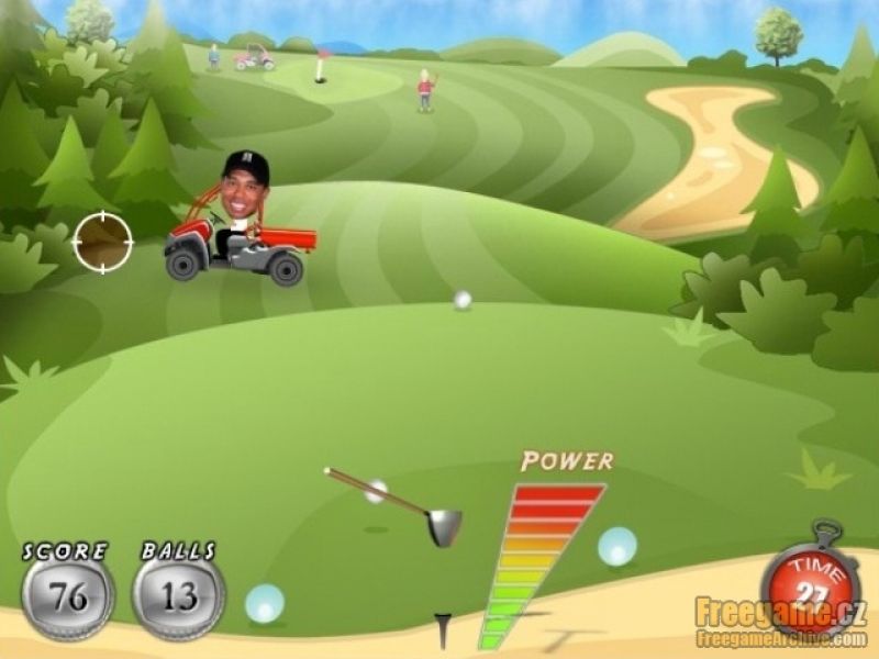 I don't often read newspapers so I heard only fragments about Tiger Woods' life but it's enough to understand this game. This top golf player drives his cart and you try to hit him with one nice swing. Aim, wait for the max power and estimate the right timing. Woods is moving from place to place and is more far away so the hit isn't sure. The game has time limit so you will enjoy probably one or two tries.