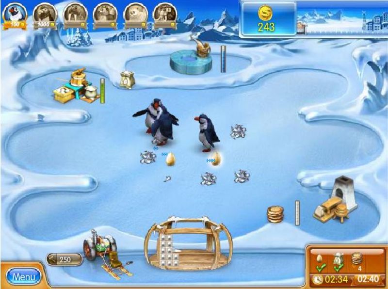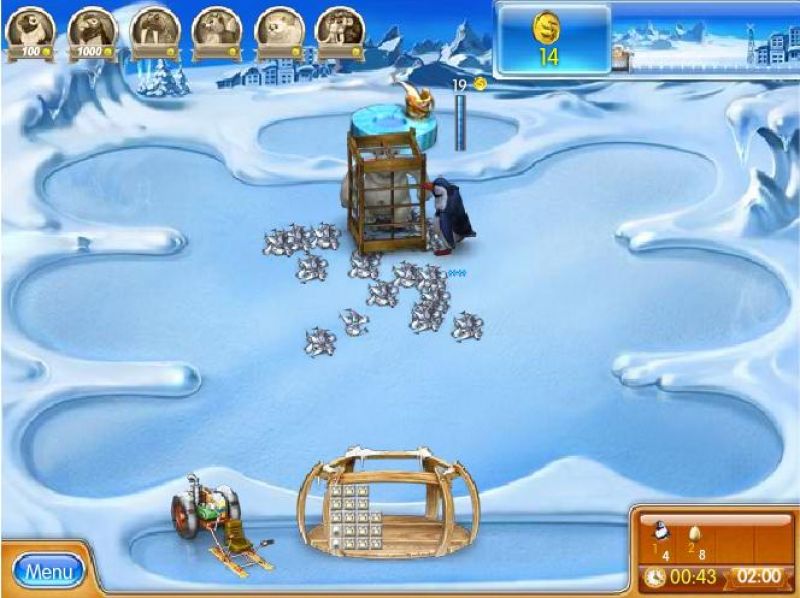 This time you are going to look after a farm in the middle of snowy world. You buy only penguins at first and you have all responsibilities in the feeding and taking care. In next levels you can buy different animals and improve several buildings. Go to the city to sell your products and buy new things on a scooter.